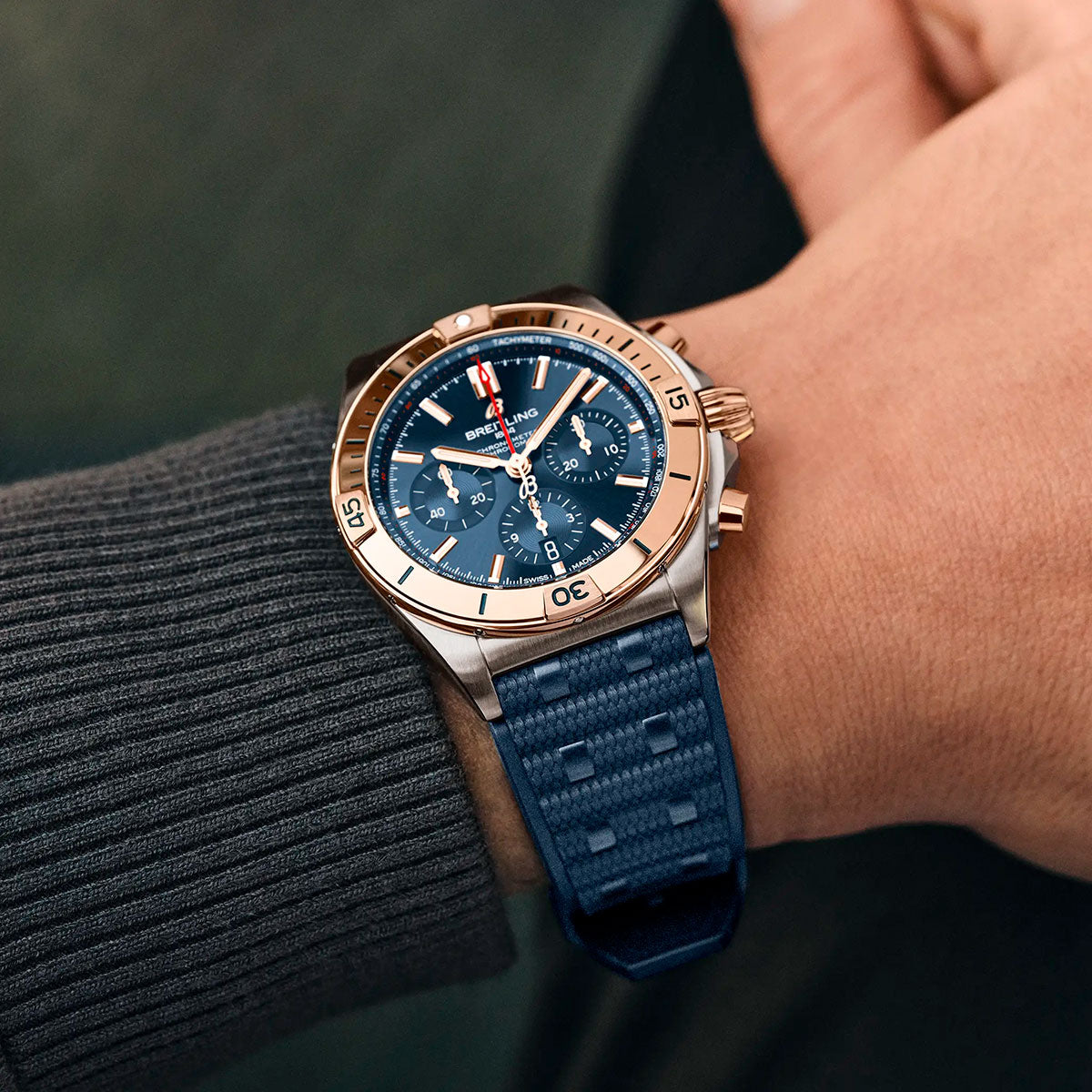 Универсальные часы Breitling для любых занятий. Chronomat занимает важное место в истории Breitling. Представленные в 1984 году, в то время, когда в моде были сверхтонкие кварцевые часы, Breitling сделал смелую ставку на впечатляюще пропорциональные механические часы. Основанные на хронографе Frecce Tricolori, который был разработан и выпущен в 1983 году в сотрудничестве со знаменитой итальянской воздушной эскадрильей, Chronomat стильно отметил столетие Breitling и ознаменовал возвращение механического хронографа на его законное видное место в бренде, который построил свою мировую репутацию на этих невероятных часах. Доступные в различных материалах от нержавеющей стали до роскошного 18-каратного красного золота, Chronomat имеют корпус 42 мм и культовый безель с четырьмя выступами. Часы Chronomat, доступные с различными цветными циферблатами, дополняются фирменным браслетом «Rouleaux» из металла или каучука и оснащены мануфактурным калибром Breitling Manufacture Caliber 01 — хронометром, сертифицированным COSC.