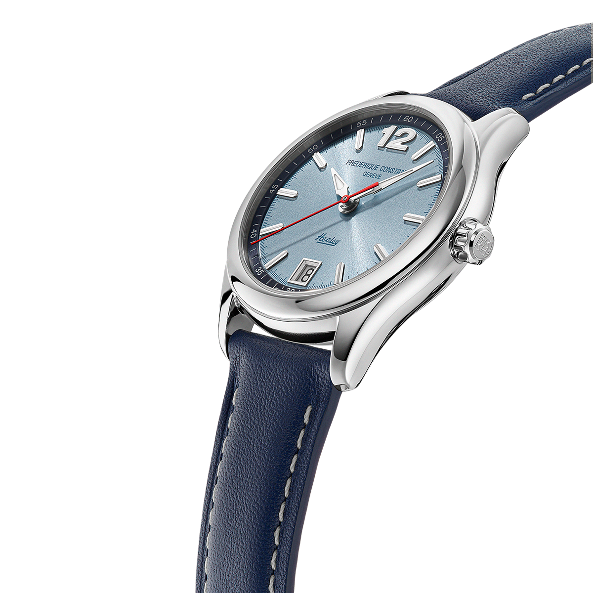 Выпущенные ограниченной серией в 1888 экземпляров, эти часы Frederique Constant имеют 36-миллиметровый корпус из нержавеющей стали с тремя стрелками и окошком даты, а характерная красная секундная стрелка подчеркивает их спортивный характер. Циферблат цвета «солнечные лучи» Healey Blue, вдохновленный металлическим синим цветом Austin-Healey 3000 MKII BN7, отражает свет на светящиеся накладные индексы и заметную цифру «12» на отметке «12 часов». На задней крышке корпуса выгравирован культовый силуэт Healey, а на циферблате красуются логотипы «Frederique Constant Genève» и «Healey» соответствующего темно-синего цвета.