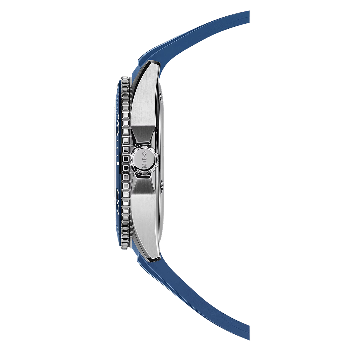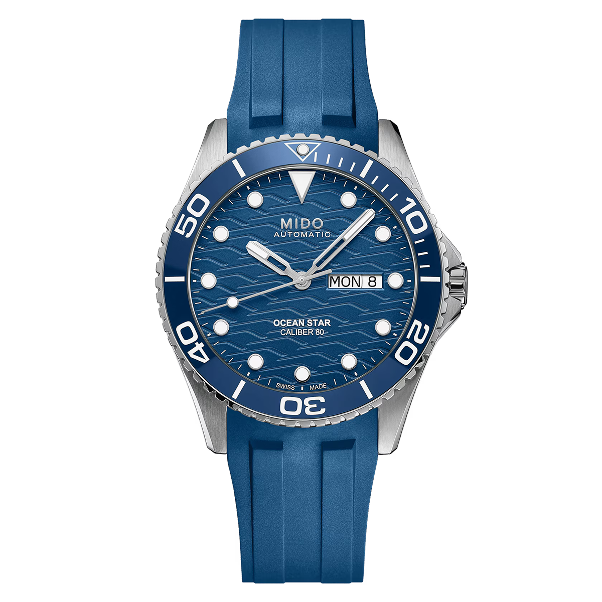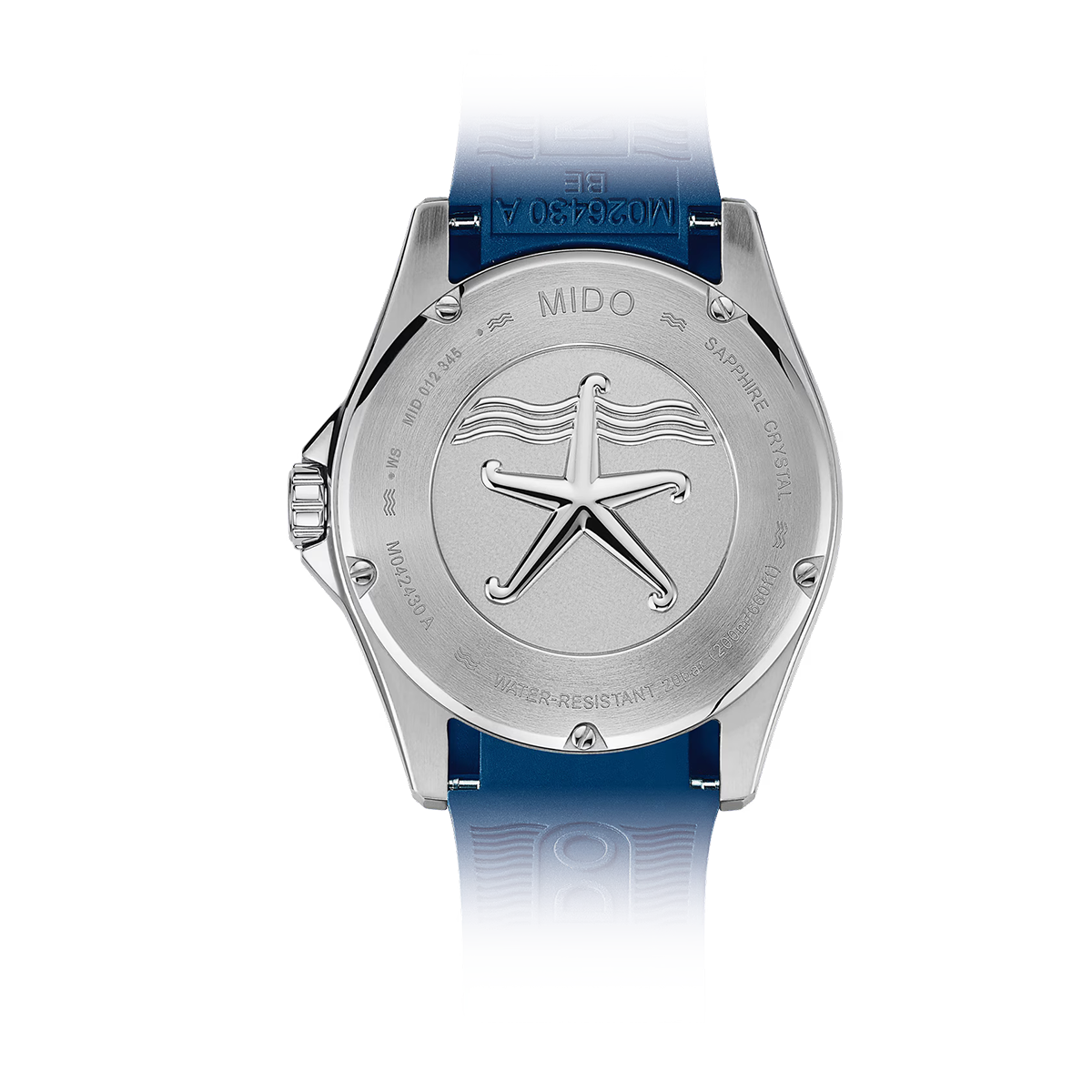 История часов MIDO начинается в 1918 году в Швейцарии, когда Жорж Шерен основал компанию, назвав ее в честь испанской фразы "Yo mido" ("Я измеряю"), заложив основу для бренда, известного инновациями, долговечностью и дизайном, вдохновленным архитектурой, и зарекомендовавшего себя как производитель надежных и точных часов. Ключевые вехи включают создание водонепроницаемых часов с корпусом-моноблоком (Ocean Star, 1959), системы автоматического завода Powerwind (1954), а также моделей, стилизованных под решетки радиаторов легендарных автомобилей (1930-е). Для однонаправленно вращающегося безеля своих спортивных часов Ocean Star 200C MIDO использует керамику — один из самых выдающихся материалов в часовом деле. Циферблат украшен рифленой текстурой и снабжен индивидуально нанесенными индексами, покрытыми белым люминесцентным составом Super-Luminova®. Эти часы для дайвинга водонепроницаемы до 20 бар, а форма корпуса обеспечивает дополнительную защиту завинчивающейся заводной головки. На завинчивающейся задней крышке выгравирован логотип Ocean Star. Кроме того, автоматический механизм в корпусе имеет автономную работу до 80 часов.