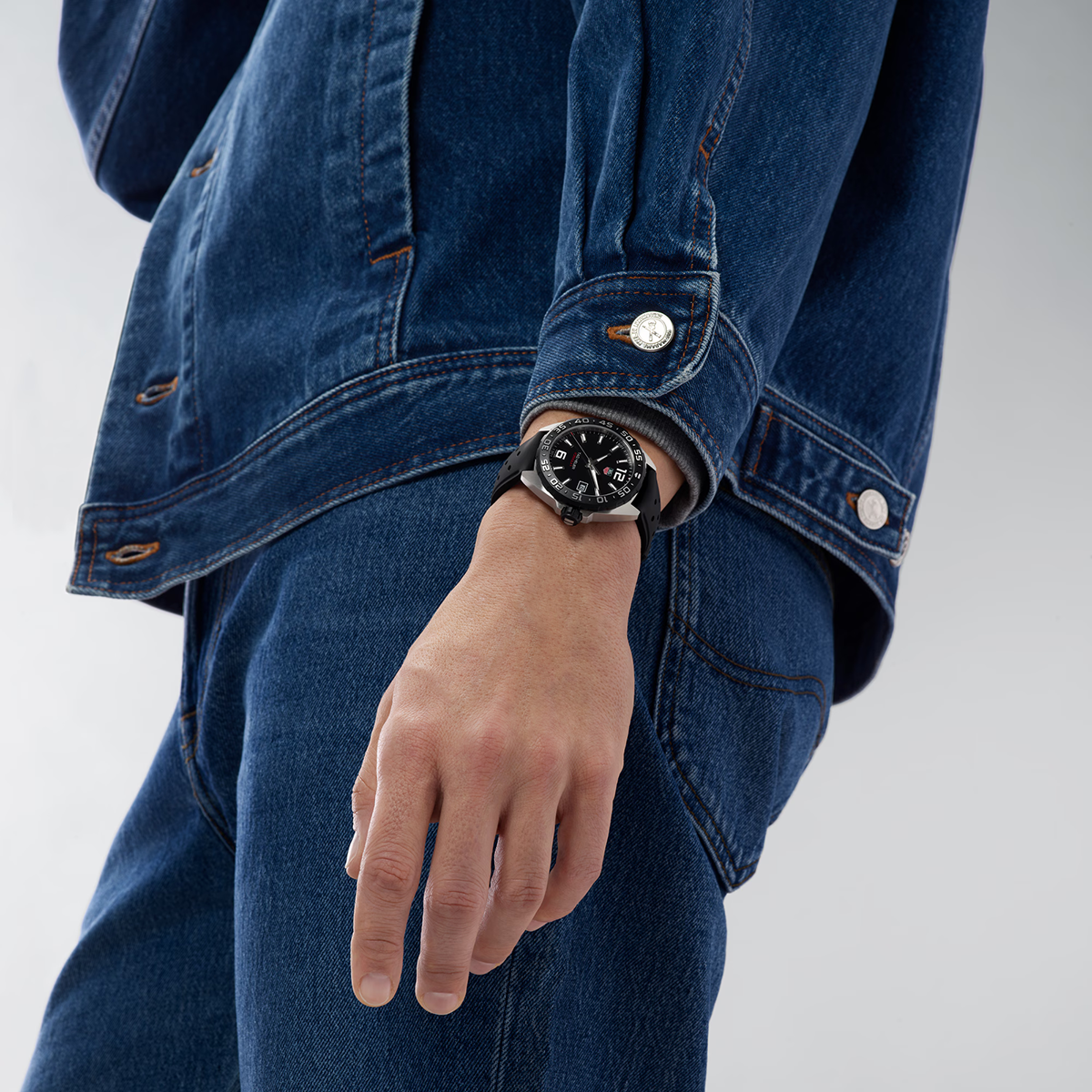 Корпус: Корпус из стали с изысканной матовой отделкой оснащен безелем с черным PVD-покрытием и тахиметрической шкалой, что придает этим спортивным часам особую элегантность.