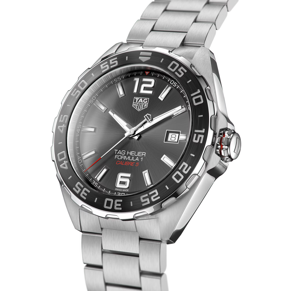 Часы TAG Heuer Formula 1, оснащенные надежным механизмом TAG Heuer Calibre 5 и воплощающие страсть к гонкам, представляют собой часы c динамичным дизайном для стремительного ритма жизни. Эталон продолжающегося сотрудничества TAG Heuer с автоспортом. Стальная раскладывающаяся застежка с предохранительными кнопками двойной блокировки позволит Вам насладиться бесстрашными гоночными приключениями.