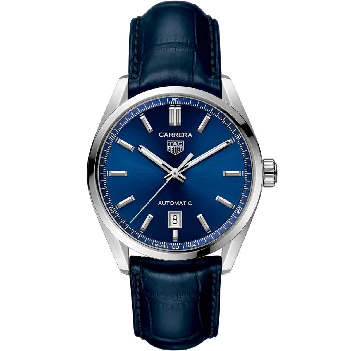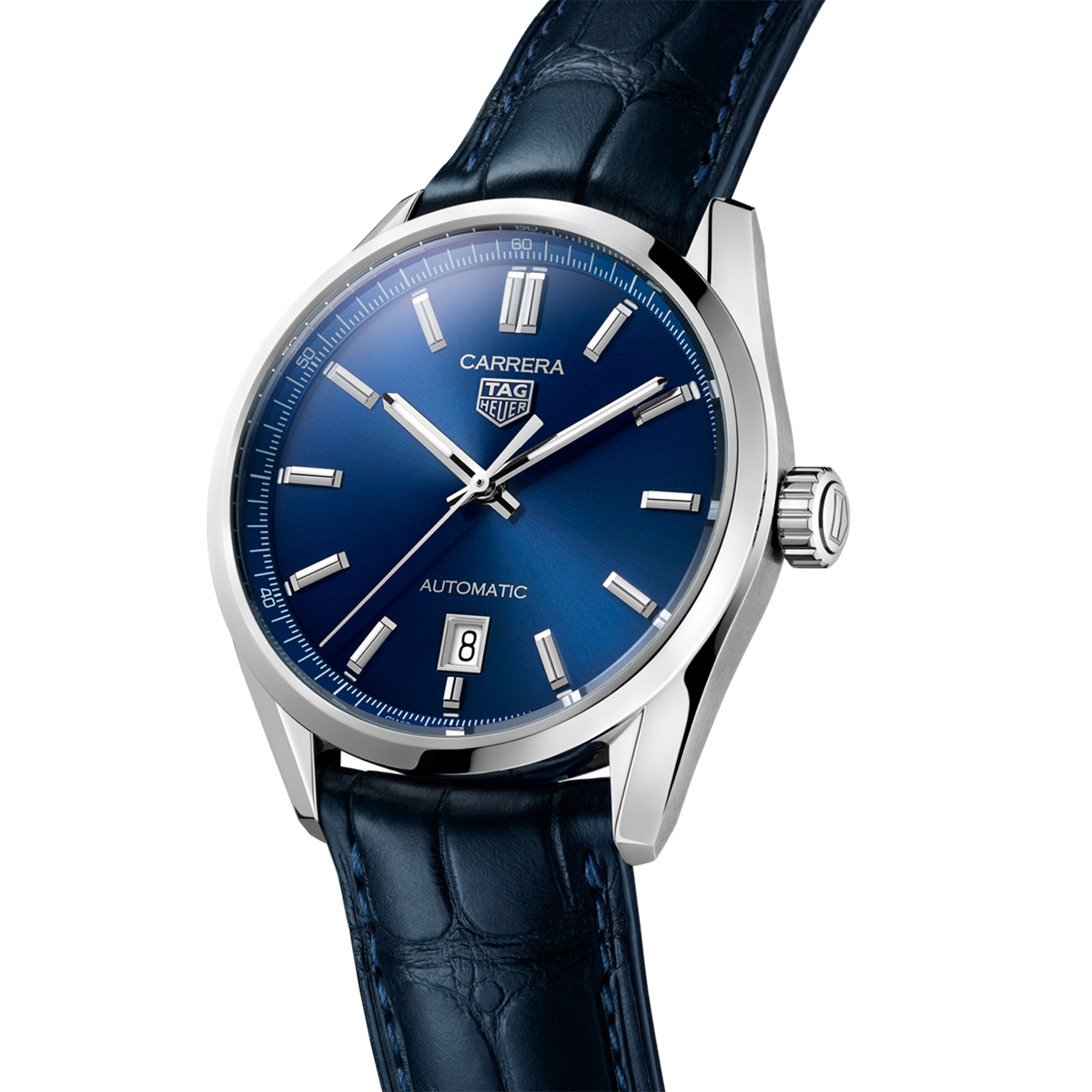Великолепные классические часы TAG Heuer Carrera – это модель для смелых городских жителей, сочетающая в себе спортивный стиль и элегантность. Роскошный матовый синий циферблат с узором «солнечные лучи» в сочетании со стрелками и метками с покрытием Super-LumiNova® обеспечивают превосходную читаемость показаний в любой момент времени.