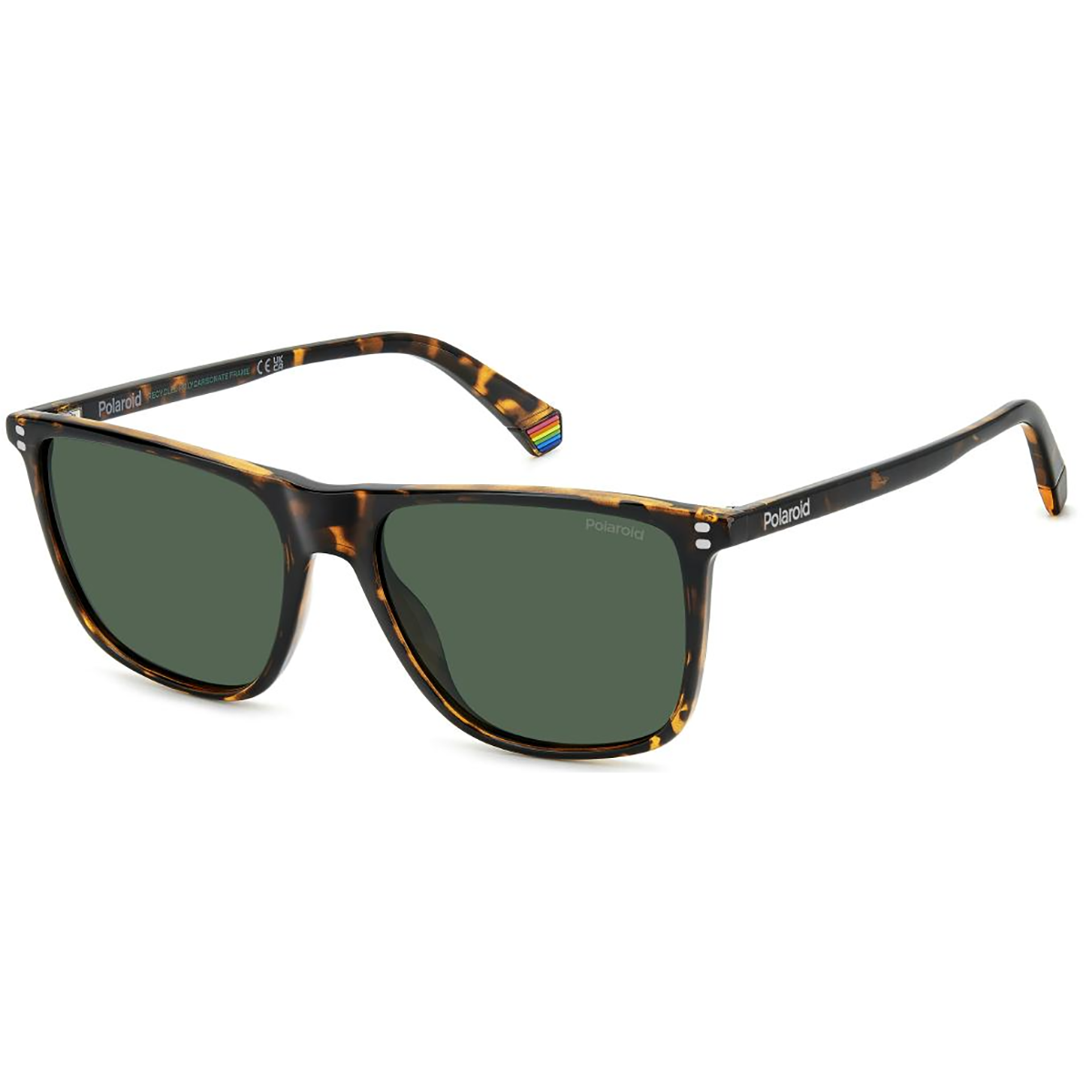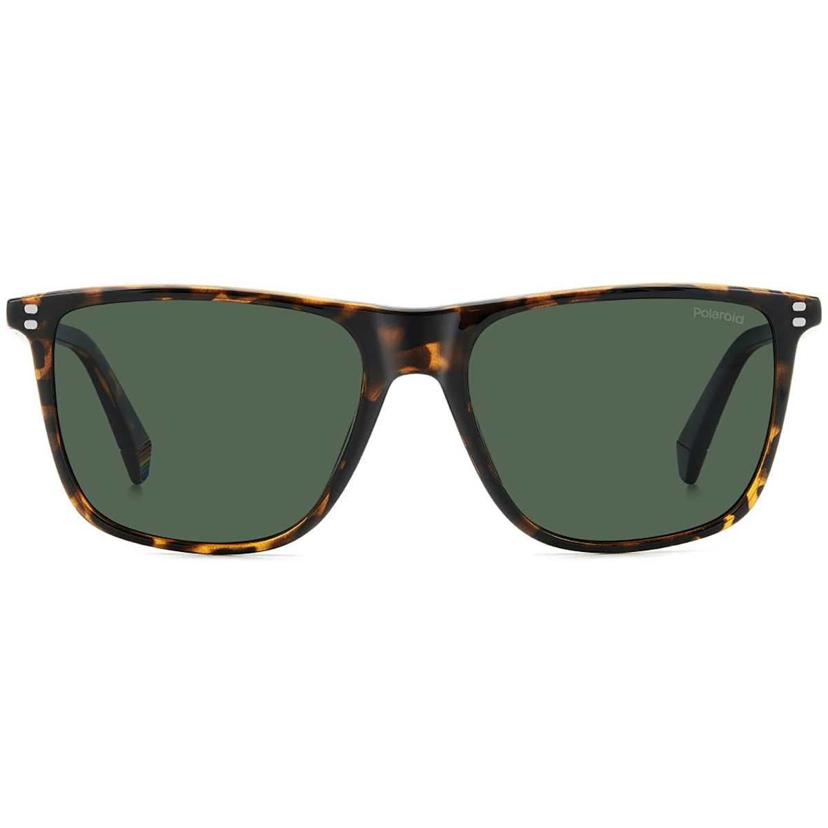These Polaroid square sunglasses were designed for cosmopolitan men who are always on the go. The brown havana front in ultra-durable polycarbonate features golden metal inserts that, combined with the polycarbonate temples, embody the brand’s characteristic attention to detail. Polarized green lenses enhance the entire look.